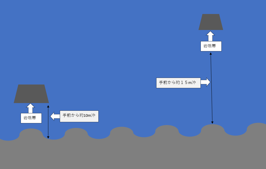 しかし手前は相変わらず変化がない様子だったので、手前は捨てて沖の方を重点的に探る作戦に変更することに。