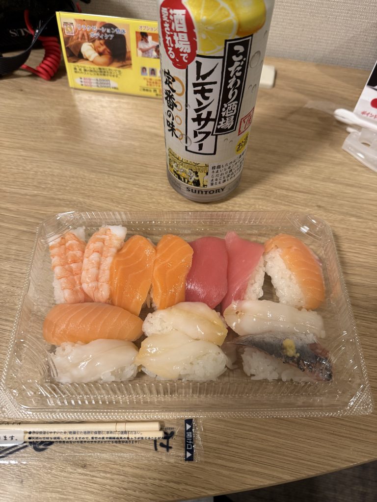 明日の運転の気力をためるのと本年度の振り返りをしながらホテルで寿司をつまみながら今遠征最後の夜を過ごすのでした