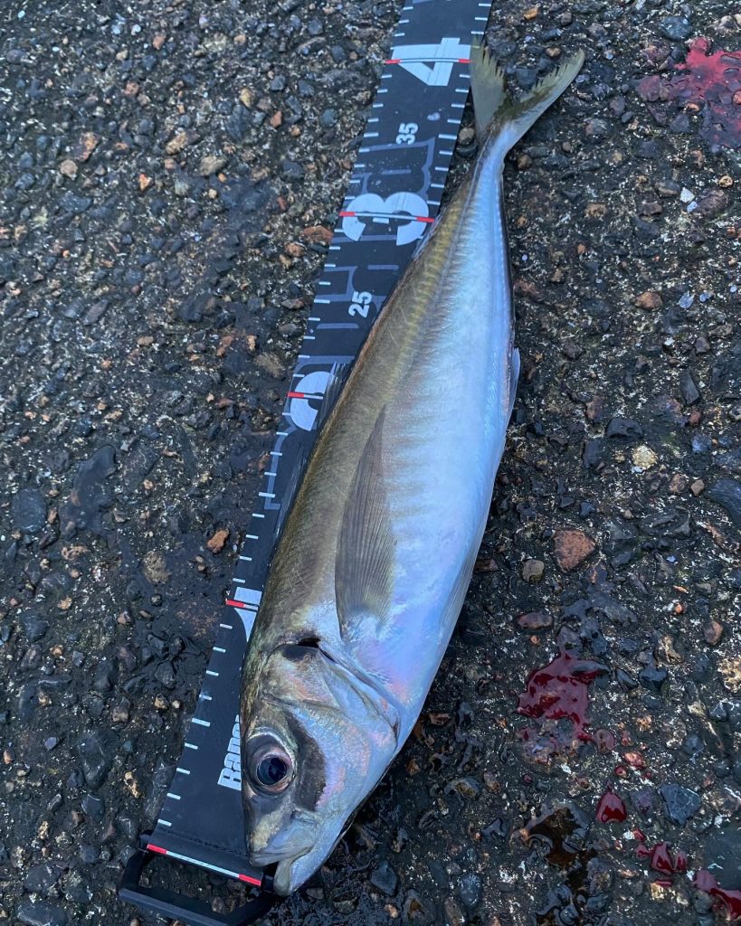 (↑マズメ時イワシを追い回していた40cm越えのアジ)